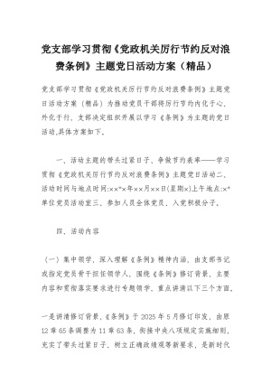 党支部学习贯彻《党政机关厉行节约反对浪费条例》主题党日活动方案(精品)