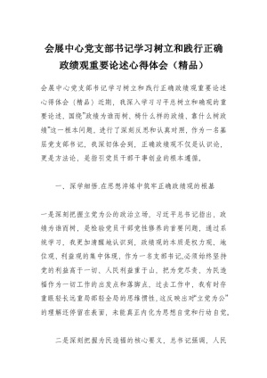 会展中心党支部书记学习树立和践行正确政绩观重要论述心得体会(精品)