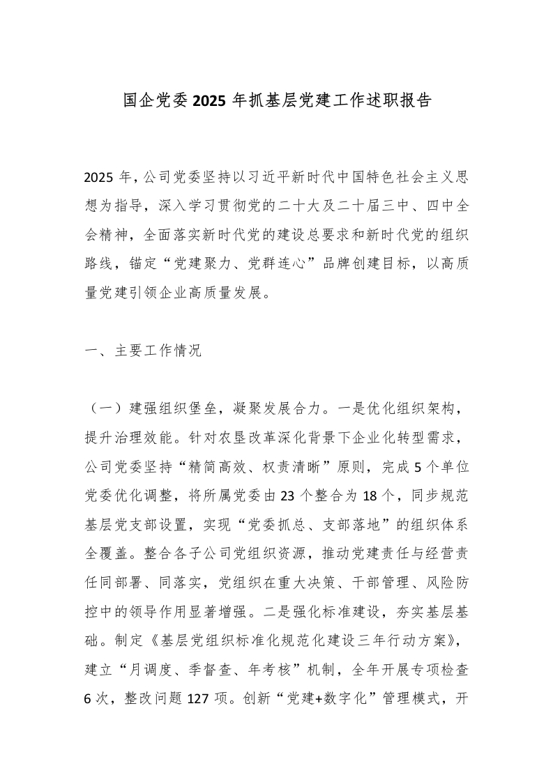 首页工作文档国企党委2025年抓基层党建工作述职报告_副本