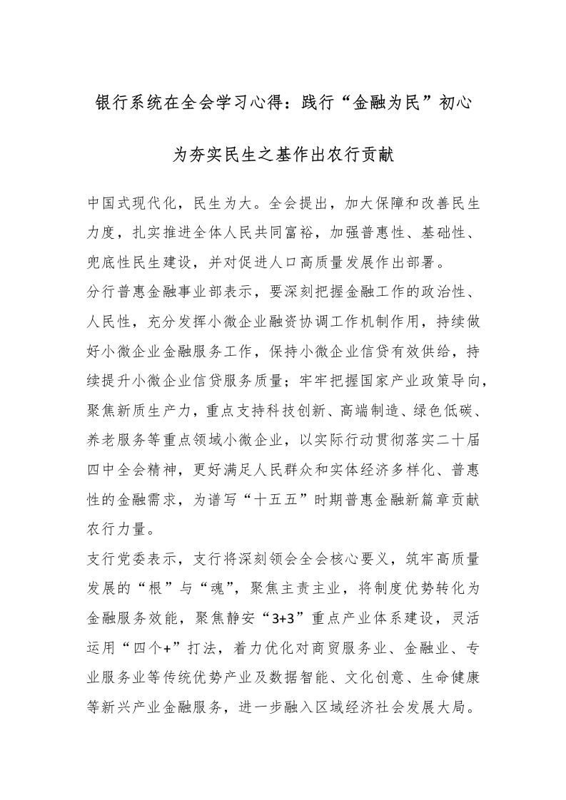 银行系统在***学习心得:践行“金融为民”初心 为夯实民生之基作出农行贡献_副本