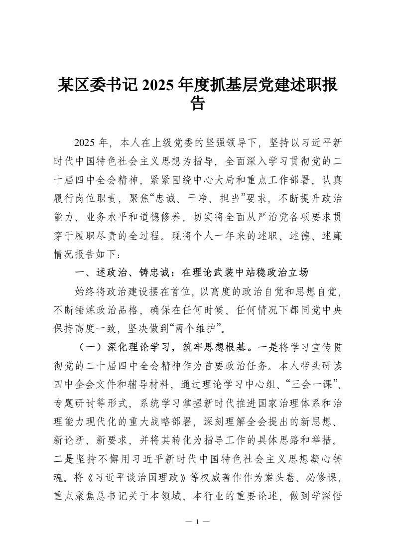 首页工作文档某区委书记2025年度抓基层党建述职报告