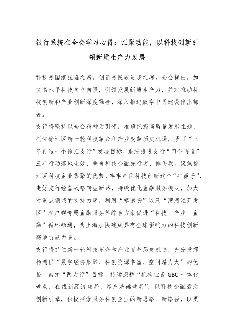 银行系统在***学习心得:汇聚动能,以科技创新引领新质生产力发展_副本