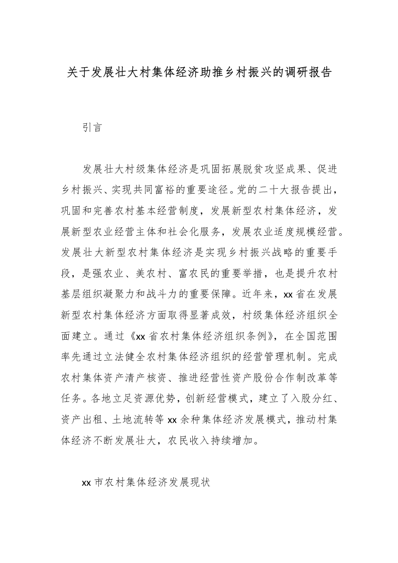 关于发展壮大村集体经济助推乡村振兴的调研报告_副本