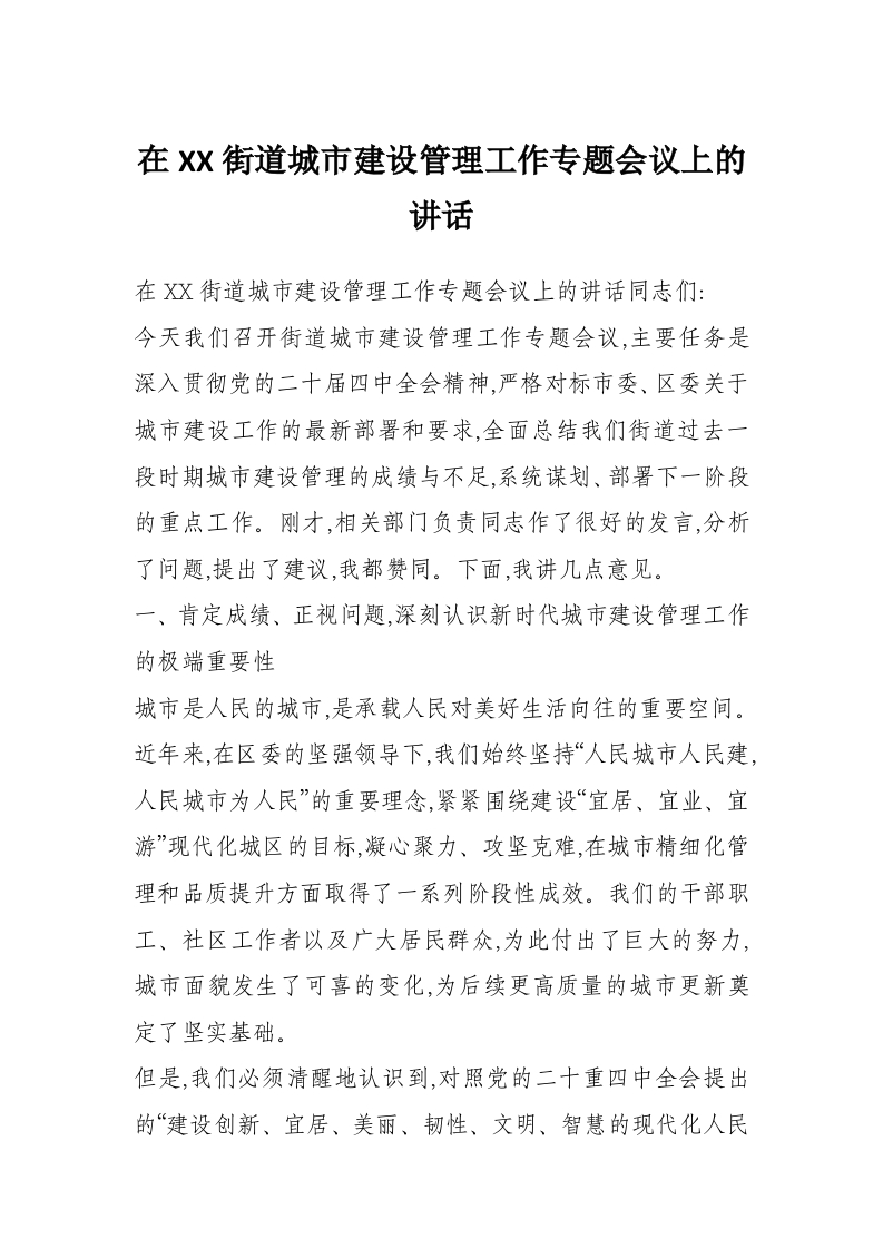 首页精选范文在XX街道城市建设管理工作专题会议上的讲话