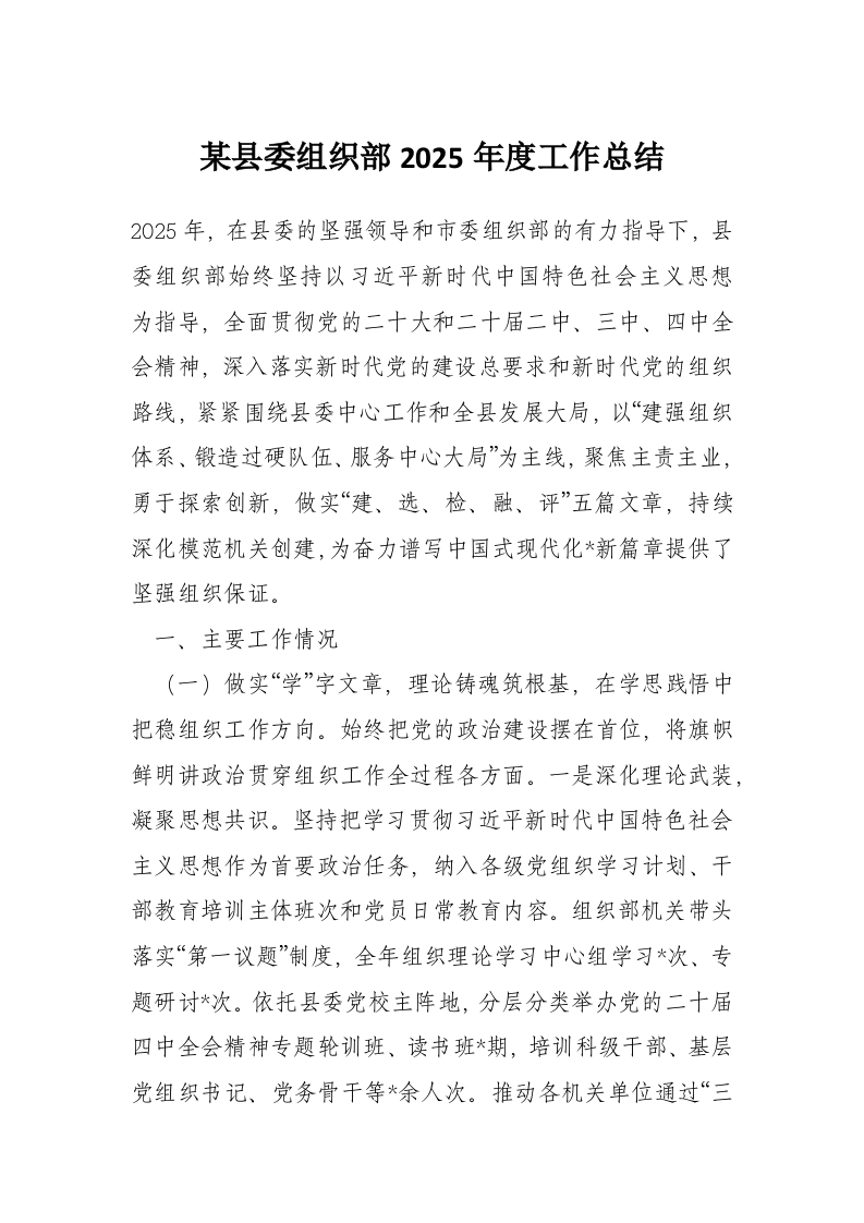 首页讲课讲稿某县委组织部2025年度工作总结
