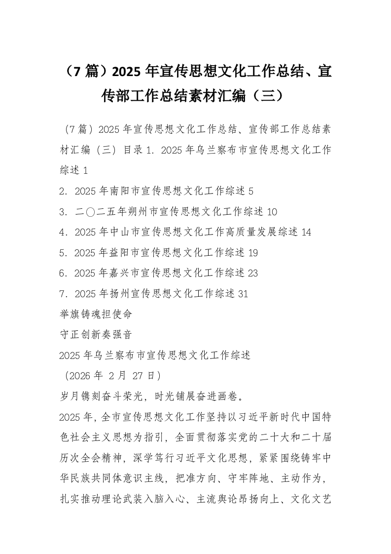 首页材料汇编(7篇)2025年宣传思想文化工作总结、宣传部工作总结素材汇编(三)