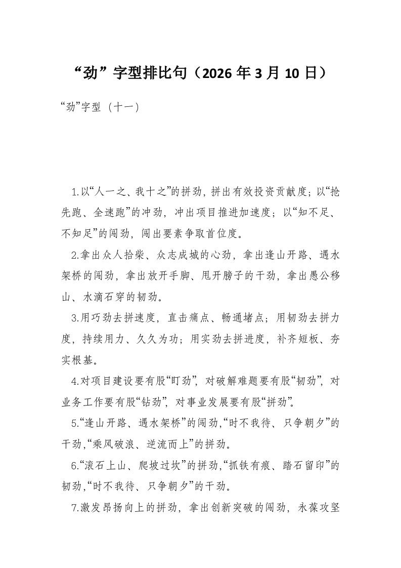 “劲”字型排比句(2026年3月10日)