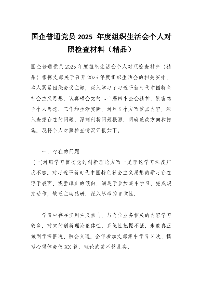 首页精选范文国企普通党员2025 年度组织生活会个人对照检査材料(精品)