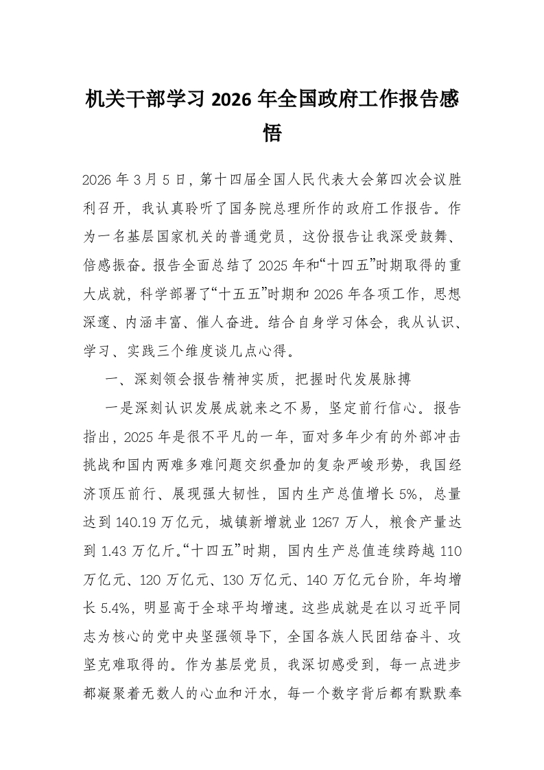 机关干部学习2026年全国***工作报告感悟