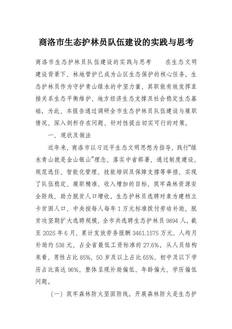 商洛市生态护林员队伍建设的实践与思考