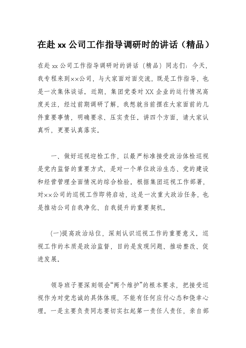 首页精选范文在赴xx公司工作指导调研时的讲话(精品)
