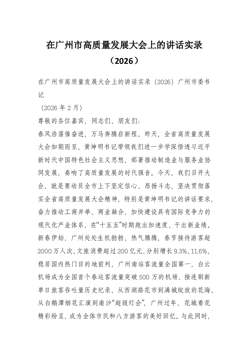 首页精选范文在广州市高质量发展大会上的讲话实录(2026)