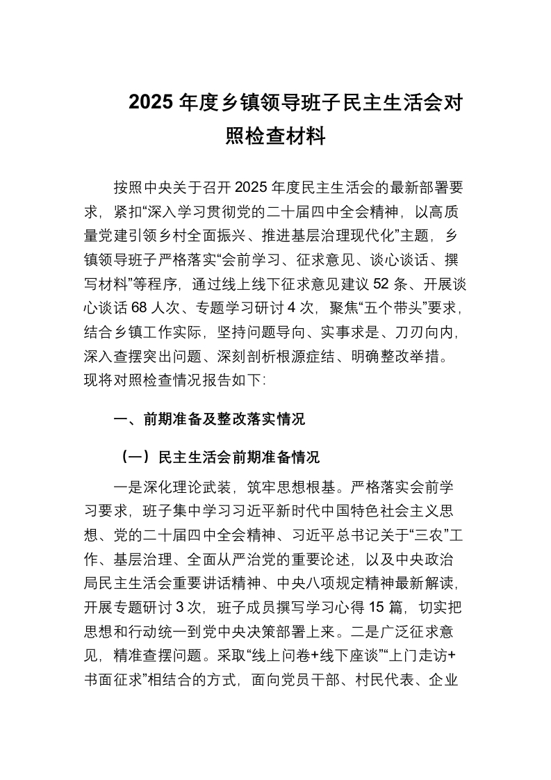 首页精选范文1_2025年度乡镇领导班子民主生活会对照检查材料(1)