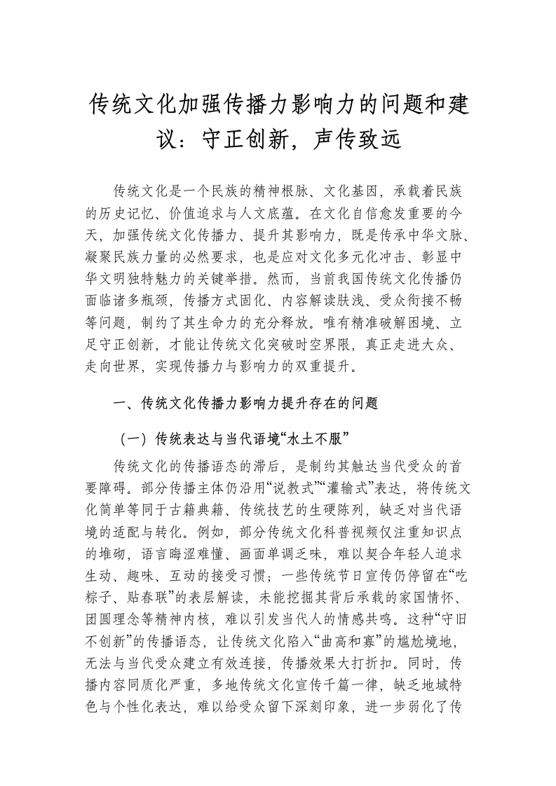 传统文化加强传播力影响力的问题和建议:守正创新,声传致远