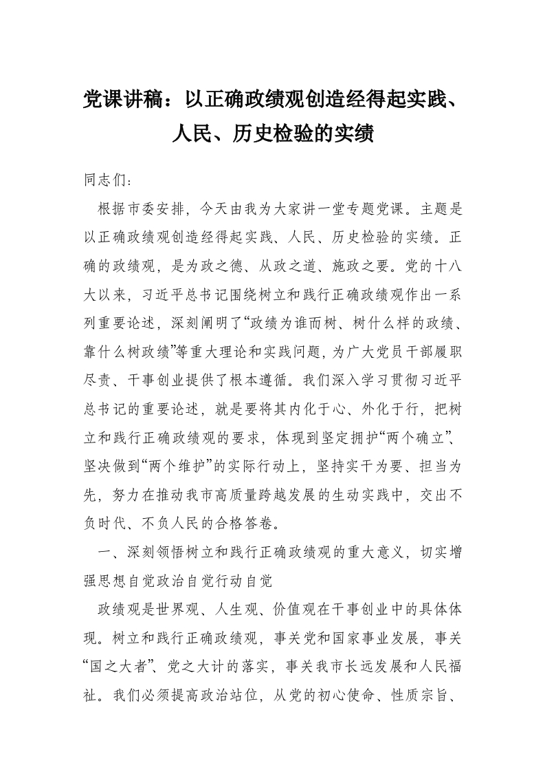 首页讲课讲稿党课讲稿:以正确政绩观创造经得起实践、人民、历史检验的实绩