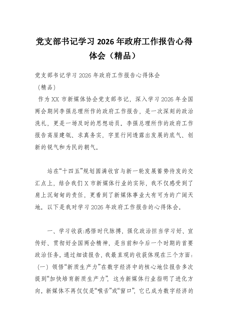 党支部书记学习2026年***工作报告心得体会(精品)