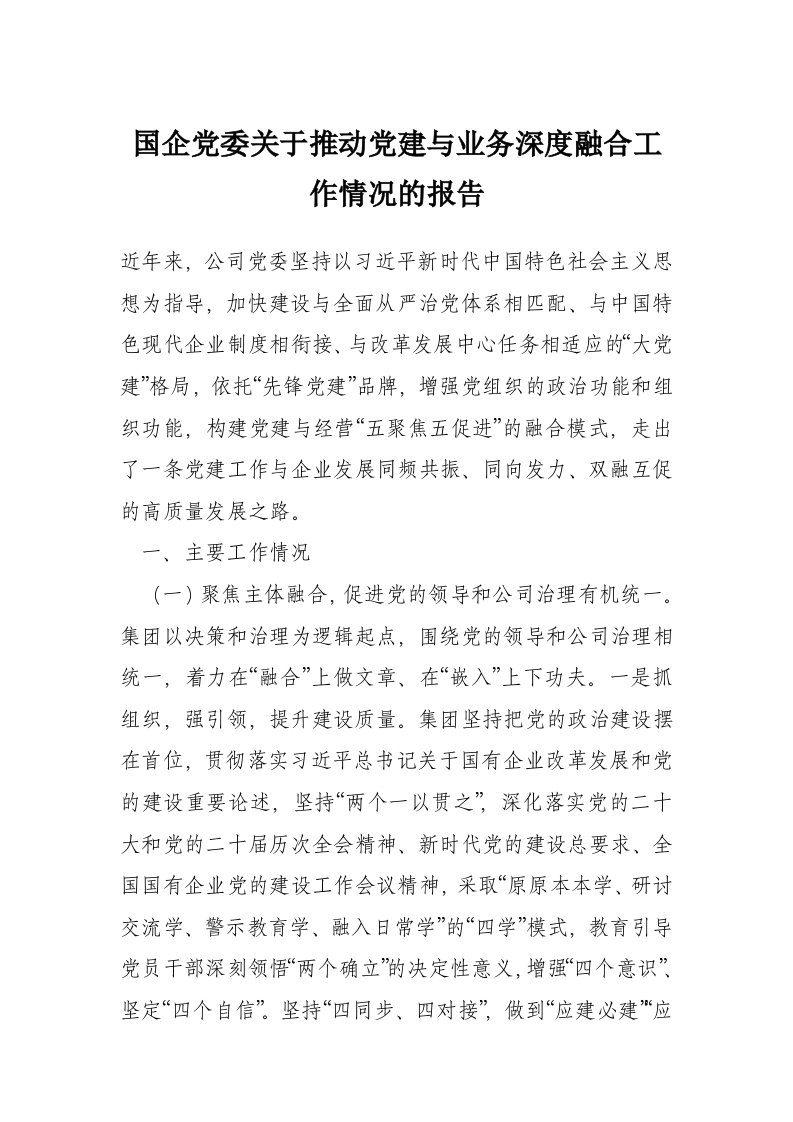 国企党委关于推动党建与业务深度融合工作情况的报告
