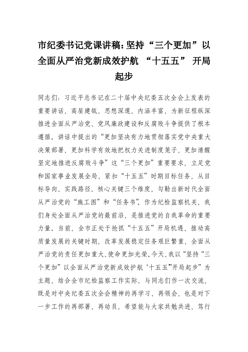 市纪委书记党课讲稿:坚持 “三个更加” 以全面从严治党新成效护航 “十五五” 开局起步