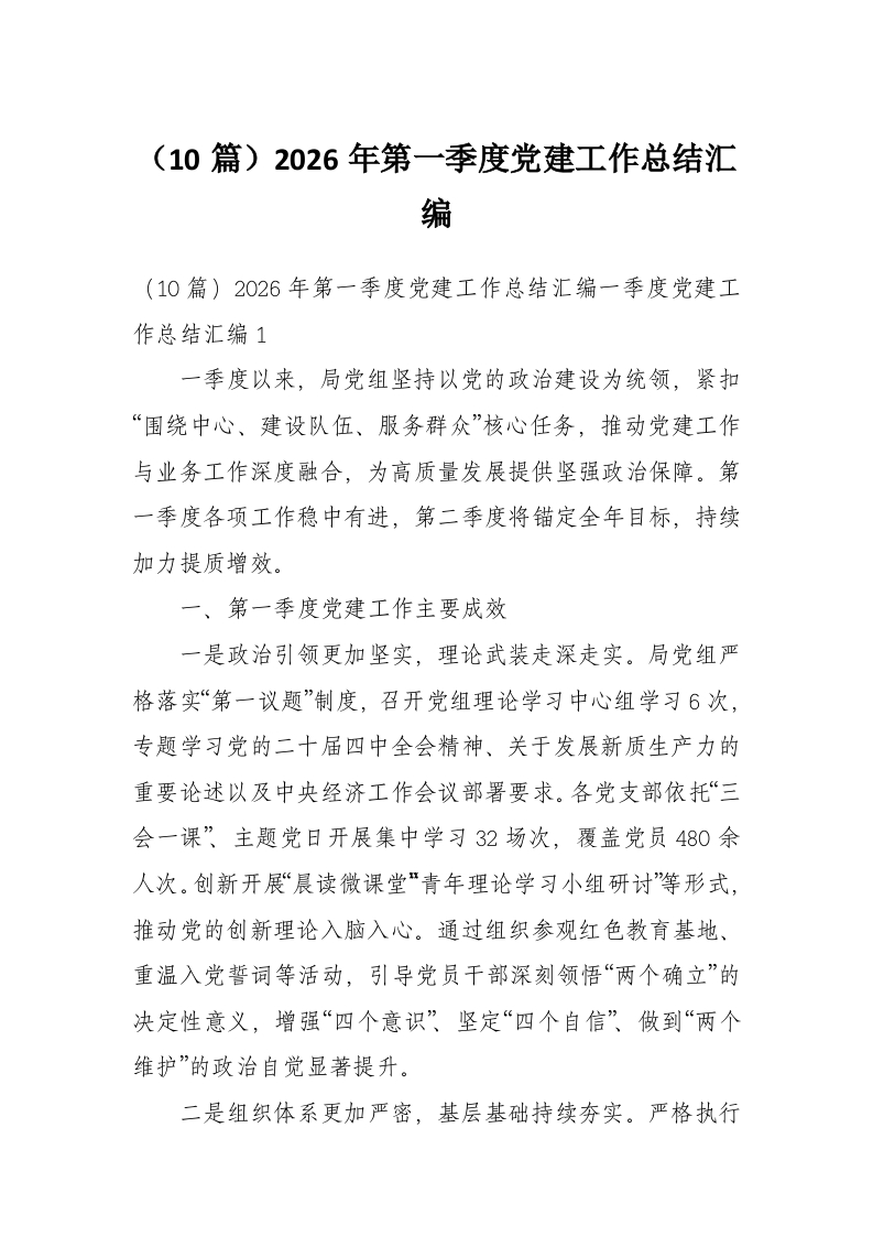首页材料汇编(10篇)2026年第一季度党建工作总结汇编