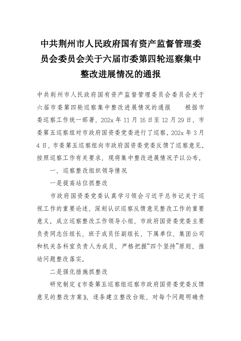 - 中共柳州市人民***国有资产监督管理委员会委员会关于巡察整改情况的通报