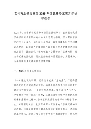 农村商业银行党委2025年度抓基层